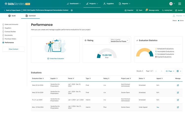 The Supplier Performance Management module helps you manage the performance of contracted suppliers and understand how well they are performing within the contract management phase of a particular project.
