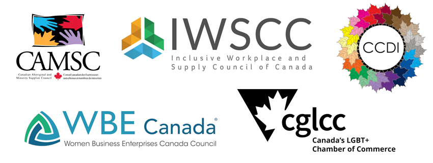 Presented in partnership with the Canadian Aboriginal and Minority Supplier Council (CAMSC), Inclusive Workplace & Supply Council of Canada (IWSCC), Women Business Enterprises Canada Council (WBE Canada), the Canadian Centre for Diversity and Inclusion (CCDI), and Canada’s LGBT+ Chamber of Commerce (CGLCC).